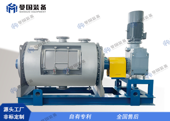 干燥機(jī)筒體設(shè)置夾套和保溫,當(dāng)含一定水分的物料進(jìn)入設(shè)備后,設(shè)備動(dòng)部件運(yùn)轉(zhuǎn)帶動(dòng)主軸上安裝的多組錯(cuò)位犁刀攪拌器以及筒體兩側(cè)板位置設(shè)置的旋轉(zhuǎn)刮板運(yùn)轉(zhuǎn),使筒內(nèi)物料產(chǎn)生不間斷漩渦離心力,不斷重疊翻轉(zhuǎn),同時(shí)在結(jié)構(gòu)上避免攪拌死角問(wèn)題。查看更多 + -